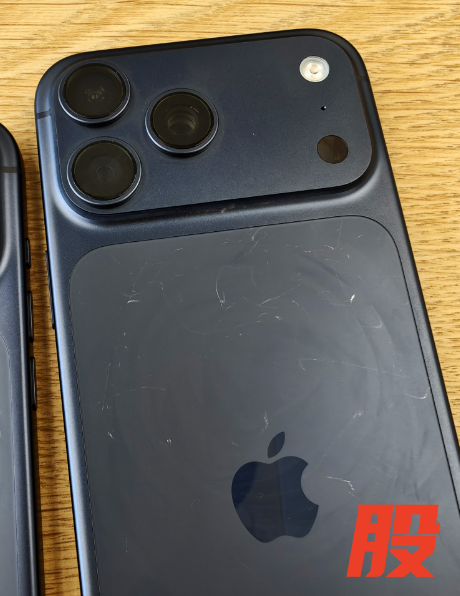 在纽约、香港、上海、伦敦的苹果门店实地探访发现,iPhone 17 Pro和Pro Max的深蓝色款在仅仅陈列数小时后就出现了划痕。黑色款iPhone Air也被观察到容易刮花。